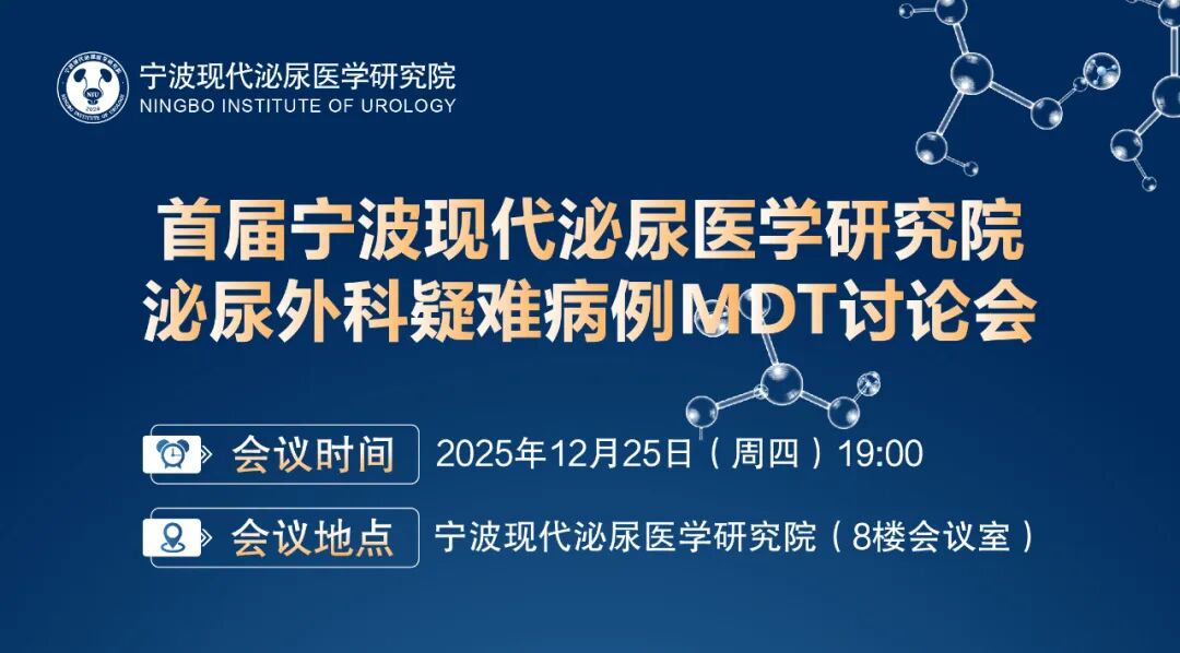 为提升泌尿外科疑难病症诊疗水平,促进多学科协作与经验交流,首届宁波现代泌尿医学研究院泌尿外科疑难病例MDT讨论会定于2025年12月25日19:00在宁波现代泌尿医学研究院(夏里特医院8楼会议室)举行。